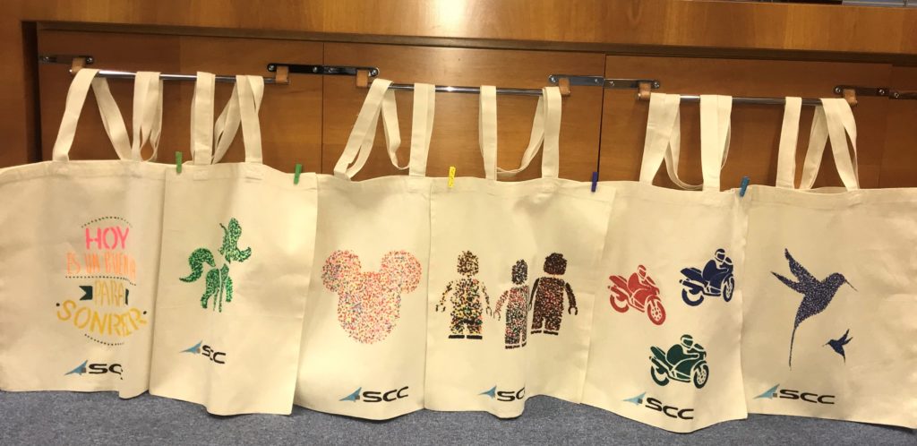 Y porque sabemos que el impacto medioambiental de una bolsa de plástico fabricada con sustancias derivadas del petróleo, es más alto del que en un principio podemos pensar, este año, el logo de SCC nos acompaña en estas bolsas realizadas con tejido ecológico.