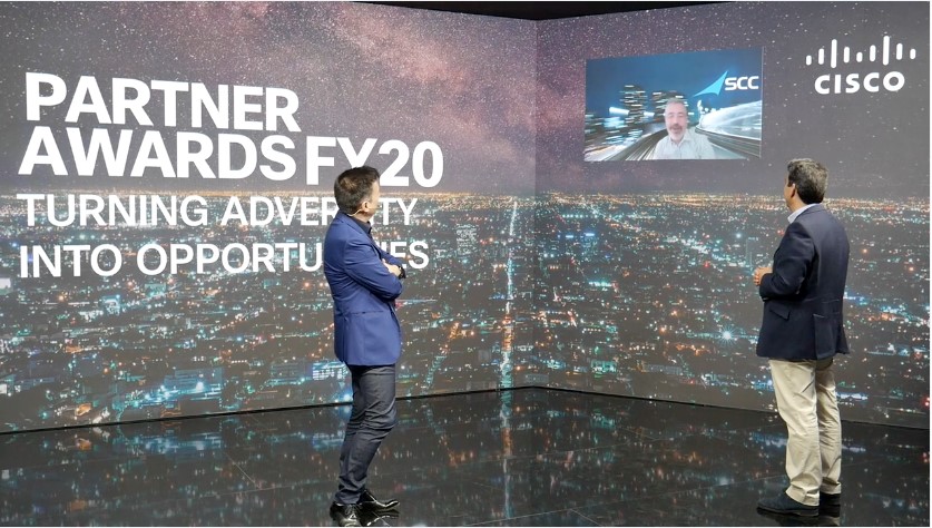 Cisco reconoce a SCC en España como «Customer Experience & Services Partner of the Year», en la ceremonia de entrega de los Partner AwardsFY20, del 1 de julio de 2021.